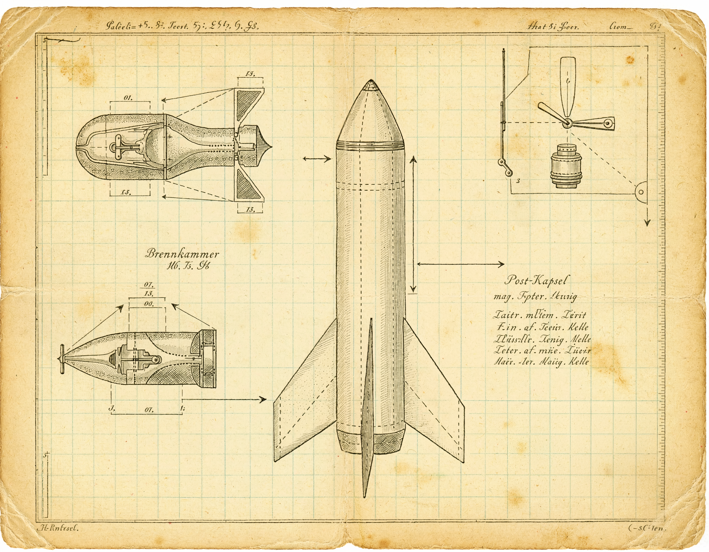 Schmiedls technisches Meisterwerk war eine Feststoffrakete (ca. 1,7m lang), konstruiert aus einer leichten Magnesium-Aluminium-Legierung. Sie erreichte ihre enorme Präzision durch exakt berechnete ballistische Kurven.